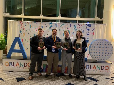 The Contents Under Pressure team (from L to R, Dan Anastasio, Dan Burkey, Matt Cooper, and Cheryl Bodnar) accepted the 2023 Himmelblau Award for Innovations in Computer-Based Chemical Engineering Education at the CAST Division Dinner on Tuesday, November 7 at the AIChE Annual Meeting in Orlando.
